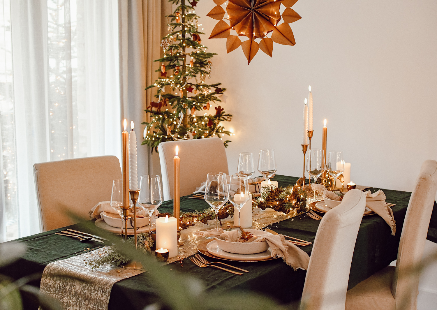 Stap nummer zes is het verdelen van kaarslicht op tafel. Mijn beste tip als het om kaarsjes gaat: creëer lichtpuntjes op verschillende hoogtes. Dinerkaarsen in kandelaars zorgen voor licht op ooghoogte, en zorgen voor knusheid en sfeer wanneer je praat met andere tafelgasten.