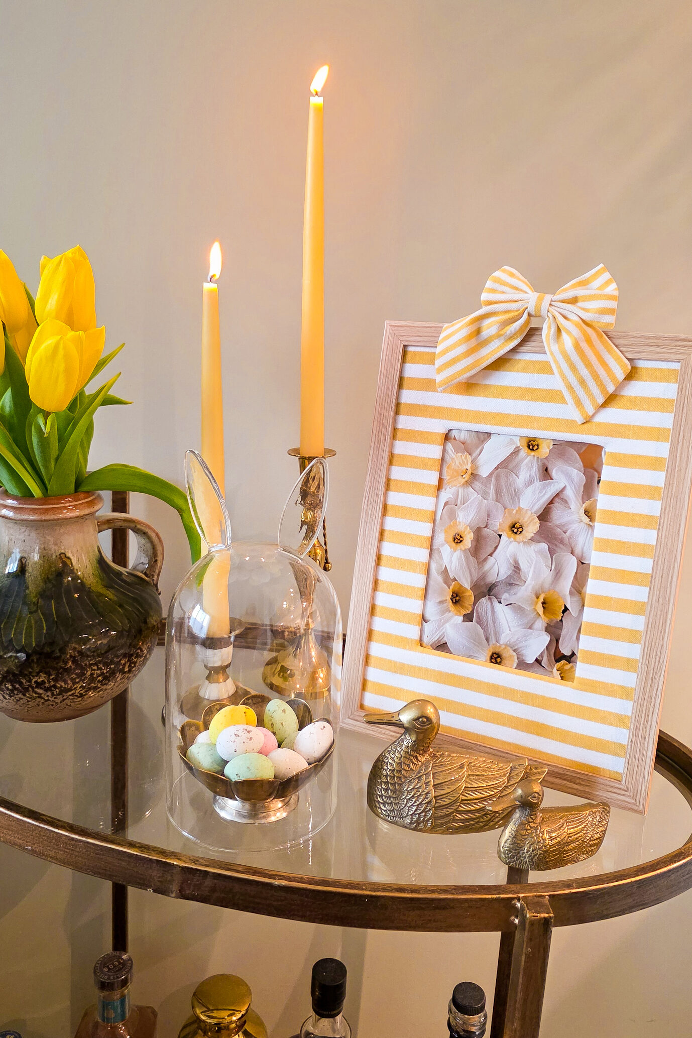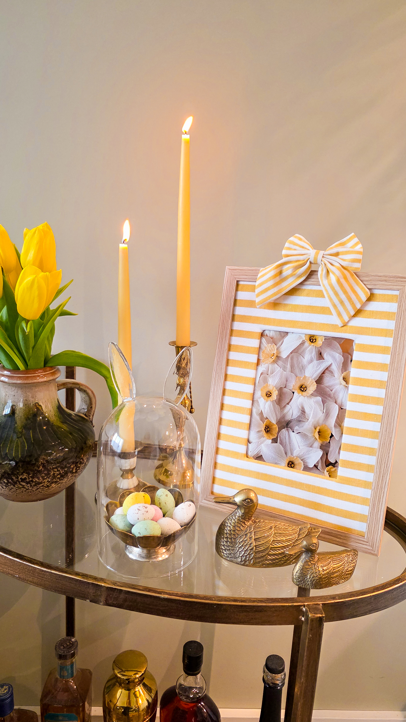 - Ten eerste natuurlijk leuke foto’s! Ik heb via Unsplash leuke rechtenvrije foto’s gedownload met voorjaarsplaatjes en die foto’s afgedrukt bij Fotofabriek. Met code SASKIA33 krijg je 33% korting op het hele assortiment van Fotofabriek. In plaats van een foto zou je ook een leuk kaartje (bijvoorbeeld eentje met een mooie illustratie of een geboortekaartje) in de lijst kunnen doen.