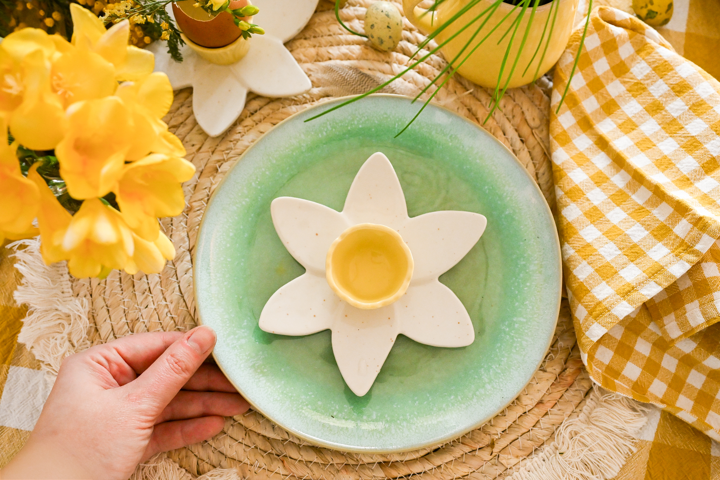 We beginnen even met het item op de foto’s hierboven en hieronder: het zijn superleuke eierdoppen in de vorm van een narcis. Het eitje zet je in het bloemhart. Fantastisch voor het paasontbijt natuurlijk. Maar ik vind het ook hartstikke leuk om eierdoppen te gebruiken als paasdecoratie. Zet er een uitgeblazen eitje in met wat (droog)bloemetjes en zet ze op een plank in de buffetkast of keuken. Zo kun je er de hele lente van genieten!